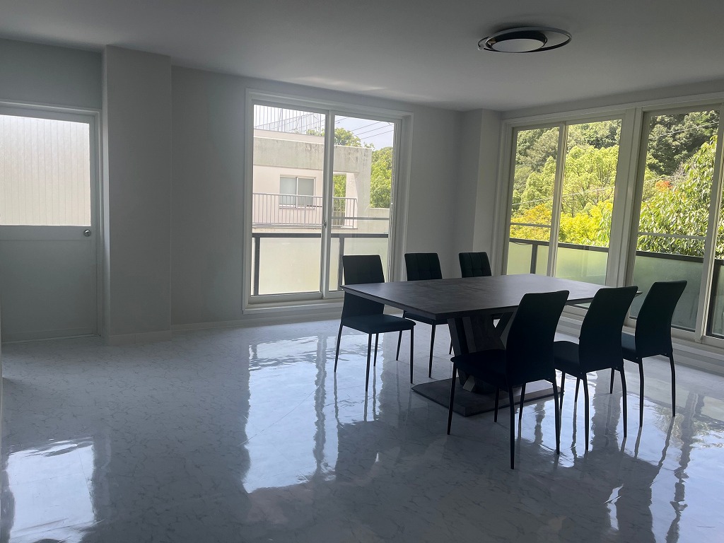 阪急六甲駅から26系統の神戸市バス乗車14分ほど、昭生病院前バス停より徒歩4分ほどのアクセスとなります。六甲川と並走した7m幅員の幹線道路と、南側4m幅員の私道に面した南西角の立地です。昭和39年建築(築ぼ61年経過)の鉄筋コンクリート造4階建ての建物をこのたびリノベーションしております。1階部分は車庫となっており、複数台の駐車が可能です。延べ床面積453㎡(車庫面積含む)に、5LDKの間取りを配置、玄関は2階と、4階の2箇所にございます。トイレは2・3・4階の3か所に、浴室は4階部分となっております。白を基調とした清潔感溢れる仕上がりとなっております。屋上への出入りが可能で、神戸港や周辺の緑の景観を楽しめる快適な空間となっております。
