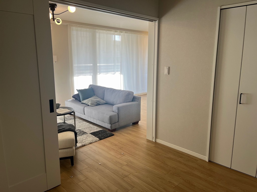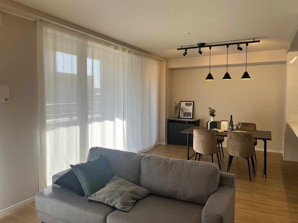 JR摂津本山駅を南東へ約850m、徒歩11分ほど、阪神青木駅を北東へ約550m、徒歩7分ほどのアクセスとなります。小寄公園東隣接、周辺は12~13階建ての中規模な分譲マンションが多くある住宅街です。平成16年建築(築後21年経過)の15階建て、総戸数236戸の大規模マンション、このたび3階部分、南向きのお部屋を全面的にリフォームしました。床・壁・天井の張替は勿論、システムキッチン・浴室・洗面・トイレなどの水回りや給湯器などの設備もすべて新調されております。専有面積79㎡に、3LDKの間取りを配置、20帖サイズのLDKが広く南側に展開しており、採光や通気性などが十分に確保されております。共用箇所にメンテナンスも行き届き、24時間有人管理、キッズルームなどがあるのもおすすめです。室内設置の小物や家具はディスプレイ用にて、撤去されます。