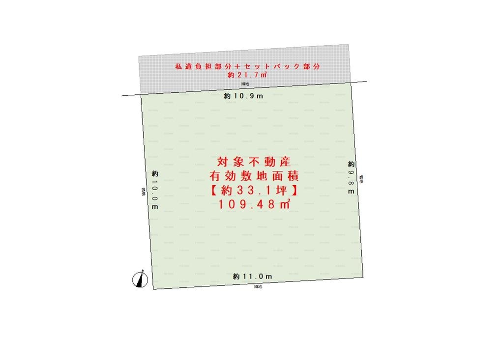 北側幅員約3.6m私道に約10.9m接道
