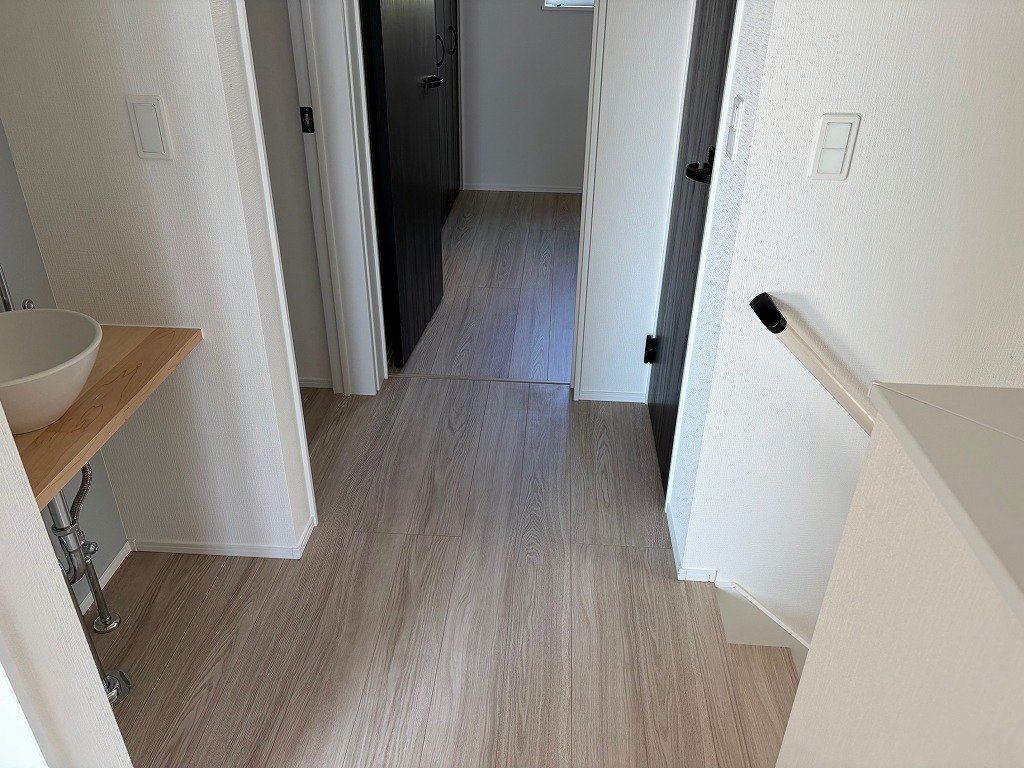 阪急王子公園駅を北東へ約1.4キロ、登り勾配の道程ですので、徒歩18分ほど、下りは徒歩14分ほどのアクセスとなります。阪急六甲駅から、2番系統の神戸市バスでのアクセスもございます。山の手住宅地、周辺は木造2階建の一戸建住宅が建ち並ぶ、閑静な住宅街となっております。本物件は、南側6m幅員の道路に面した木造2階建、新築分譲住宅、2区画販売の東側の棟です。北側に、3mほどの私道もあり、南北両面道路に面しているとなります。道路面より、1mほどの高台となっており、前面に2台分の駐車スペースがございます。延べ床面積104㎡に、4LDKの間取りを配置、オープンタイプのキッチン、広めの洗面所などが特徴的です。2階の廊下箇所にも、洗面台が設置されております。採光や通気性が十分に確保された明るく、快適なお家です。