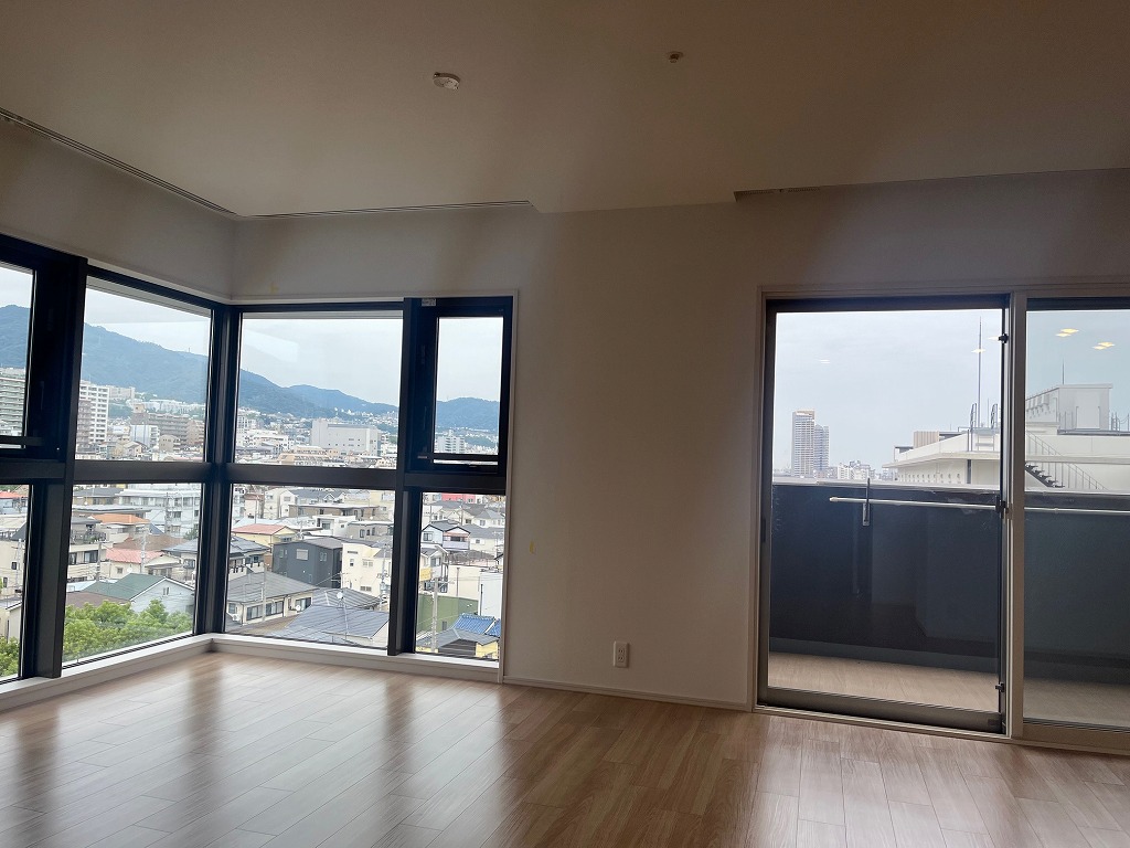 JR摩耶駅を西へ約150m、徒歩2分ほどの駅前立地です。令和4年建築(築後3年経過)の10階建て、総戸数125戸の大規模マンション、このたび7階部分、北・西・東の3方向角のお部屋が売り出されました。南側がJR線の軌道となっており、本件は反対側の北方向ですが、リビングのサッシは2重となっており、電車通過音はそれほど気にはなりません。専有面積72㎡に、3LDKの間取りを配置、バルコニーは北・西・東の3か所に設置されております。リビング北東角の窓サッシは、足元まで開放しており、素敵な景観と、開放的なリビング空間を演出しております。またバルコニーには、スロップシンクが設置されております。六甲山を見渡す景観が一番のおすすめです。駅前にもスーパーがございますが、人気の水道筋商店街にも、約400mという近さも嬉しいものです。