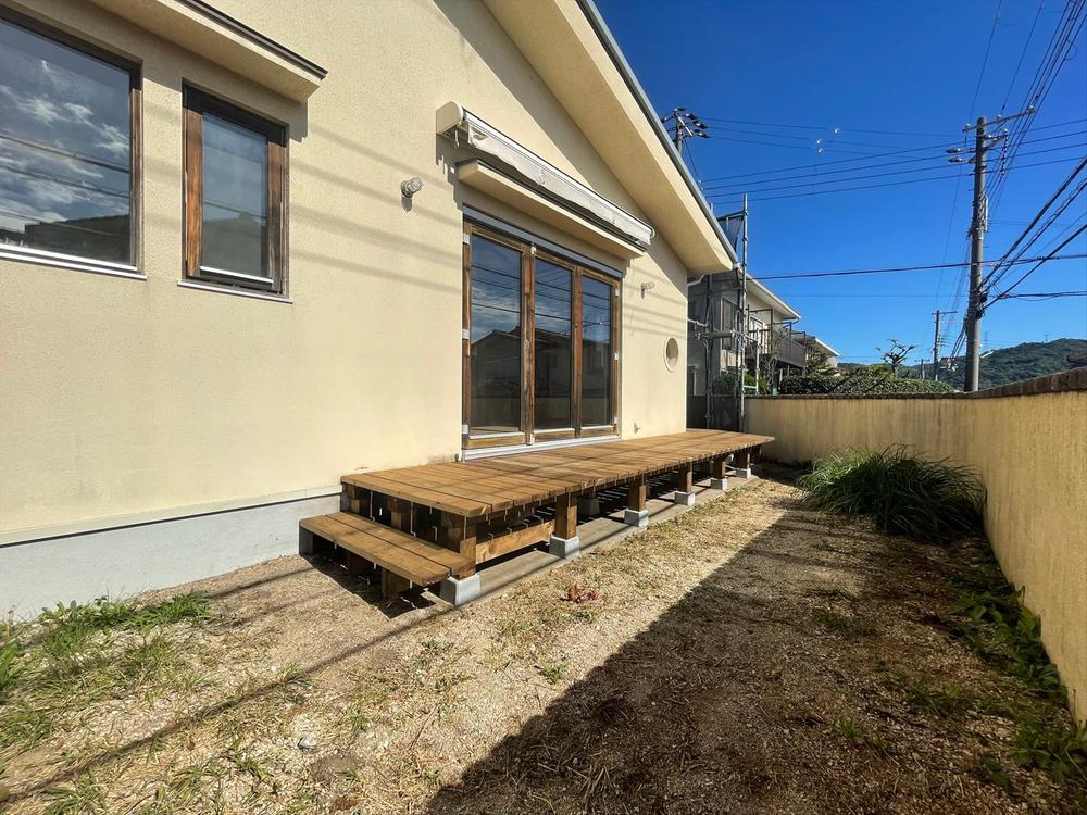 JR住吉駅からバス乗車18分、渦森台バス停より徒歩3分ほどのアクセスとなります。山の手のエリア、6~80坪ほどに区割りされた閑静な住宅街となっております。本物件は、東側6m、南側6mの東南角に位置し、南側道路面より1m程度高台となっております。平成15年建築(築後22年経過)の木造2階建中古一戸建を、このたび内外装全面的にリフォームしております。延べ床面積106㎡に、5LDKの間取りを配置、床・壁などウッディ調な仕上げが素敵です。LDKの吹き抜け空間が開放的で、またリビング前に、ウッドデッキも設置しております。南側に広く展開した間取りにて、採光や通気性などは、十分に確保されているのもおすすめです。車は縦列で、3台分の駐車スペースがございます。