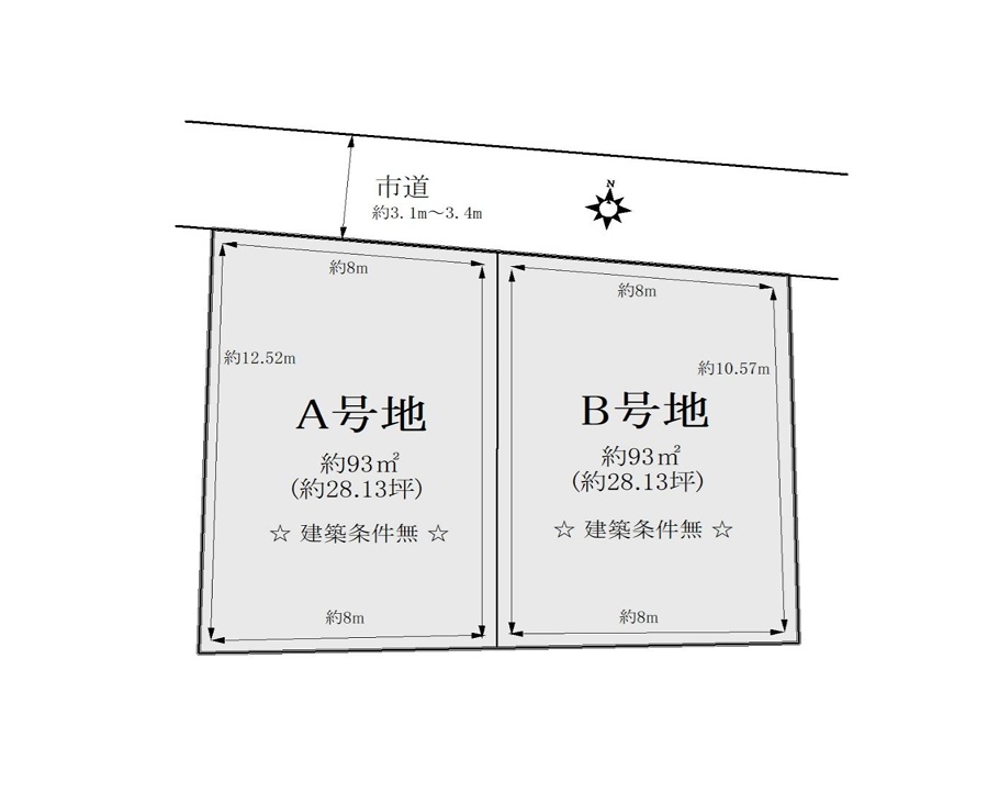 北側幅員約3.1~3.4m公道に約8.2m接道
