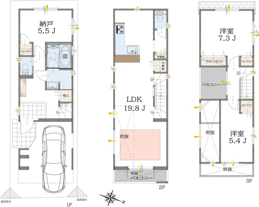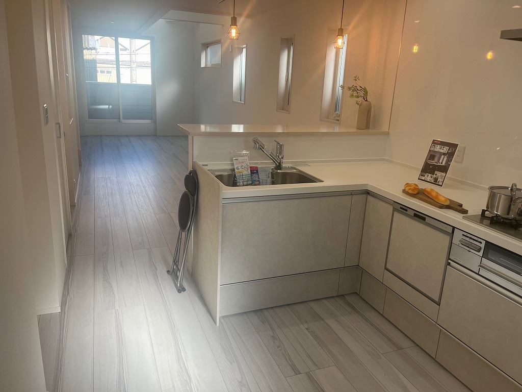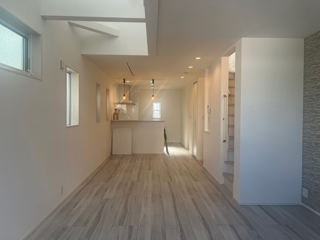 阪神青木駅を南東へ約550m、徒歩8分ほどのアクセスとなります。国道43号線の南側のエリア、周辺は一戸建て住宅の他、小規模な工場や倉庫などが混在する住宅街となっております。本件より南側300mほどにて、大規模な商業移設(サンシャインワーフ)がございます。本物件は、東側4m幅員に面した立地で、6区画分譲の北側から4番目の棟です。ビルトインの駐車場が1台分付いております。延べ床面積(車庫面積含む)107㎡に、3LDKの間取りを配置、2階LDKの吹き抜け空間が特徴的で、開放感がございます。各所の収納が機能的なのがおすすめです。
