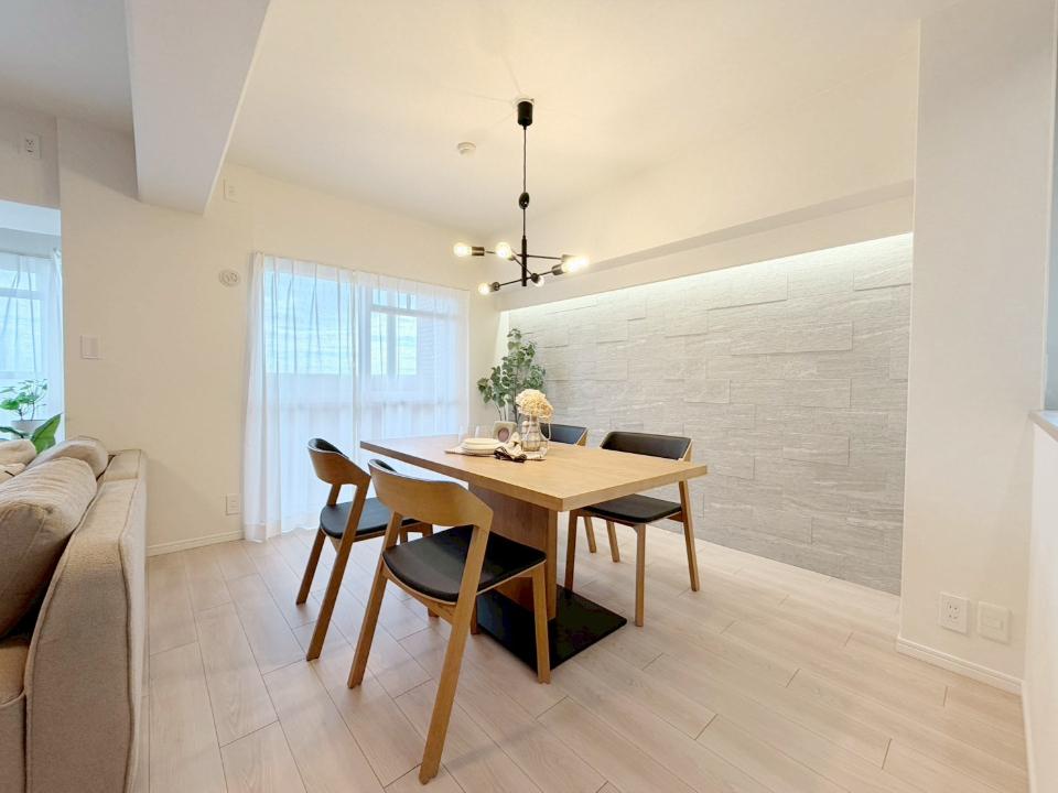阪神深江機を南東へ約700m、徒歩9分ほどのアクセスとなります。国道43号線の南側の立地、よって車両通行音がします。周辺は一戸建て住宅の他、分譲や賃貸のマンション、また小規模な工場や事務所などが混在する住宅街です。昭和61年建築(築後40年経過)の15階建て、総戸数115戸の大規模マンション、このたび14階部分、南西角のお部屋をリノベーションしました。床・壁・天井の張替は勿論、システムキッチン・浴室・洗面・トイレなどの水回りや給湯器などの設備もすべて新調されております。専有面積92㎡に、ゆったりと3LDKの間取りを配置、バルコニーは南側・西側の2箇所に設置されております。19.4帖サイズのLDKは、開放感があり、大容量のパントリーがあるのが嬉しいものです。室内設置の小物や家具はディスプレイ用にて、撤去されます。