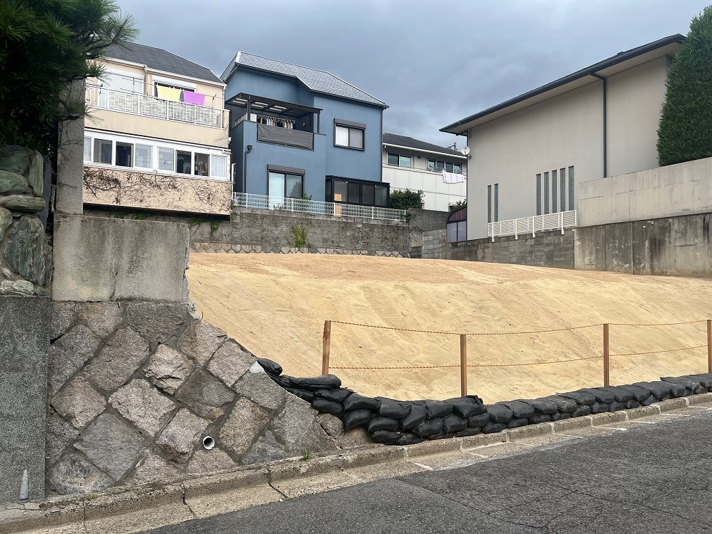 阪急御影駅を北西へ約1.2キロ、登り勾配の道程で徒歩17分ほど、下りは徒歩14分ほどのアクセスとなります。阪急六甲駅からのバス路線のアクセスもございます。山の手の住宅街<御影山手>エリア、7~8坪に区割りされた整然とした街並みが人気の閑静な住環境です。本物件は、南側4.7m幅員の道路に、間口が約7.5面した更地です。従前の邸宅を解体し、2区画に分割された西側の土地です。道路面より1.5mほど高くなっております。建築条件が付いておりませんので、お好きな工務店やハウスメーカーでの建築が可能です。御影北小学校まで約850mほどの距離です。