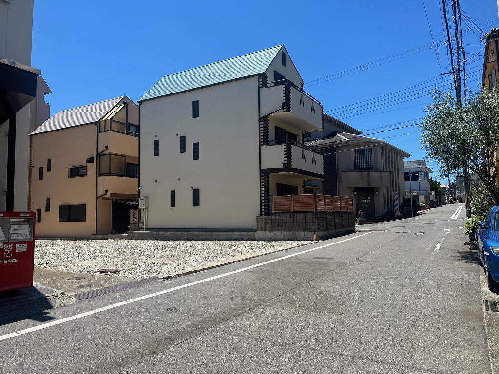阪急六甲駅を南東へ約550m、徒歩7分ほど。JR六甲道駅を北東へ約580m、徒歩8分ほどのアクセスとなります。周辺は一戸建ての住宅の他、小規模な商店や、分譲や賃貸などのマンションが混在するエリアで、東隣接に高羽郵便局がございます。北側6m幅員の道路に、間口が9.6m面した売土地67坪です。従前は倉庫が建っておりましたが、解体され、更地となっております。前面道路との高低差はございません。建築基準法における第一種中高層エリアですので、3~4階ほどの建物の建築が可能です。本件南側には5階建ての建物が建っております。前面道路は東行きの一方通行で、交通量はそれほど多くはありません。個人住宅の他、マンションや事務所などの建設も可能です。
