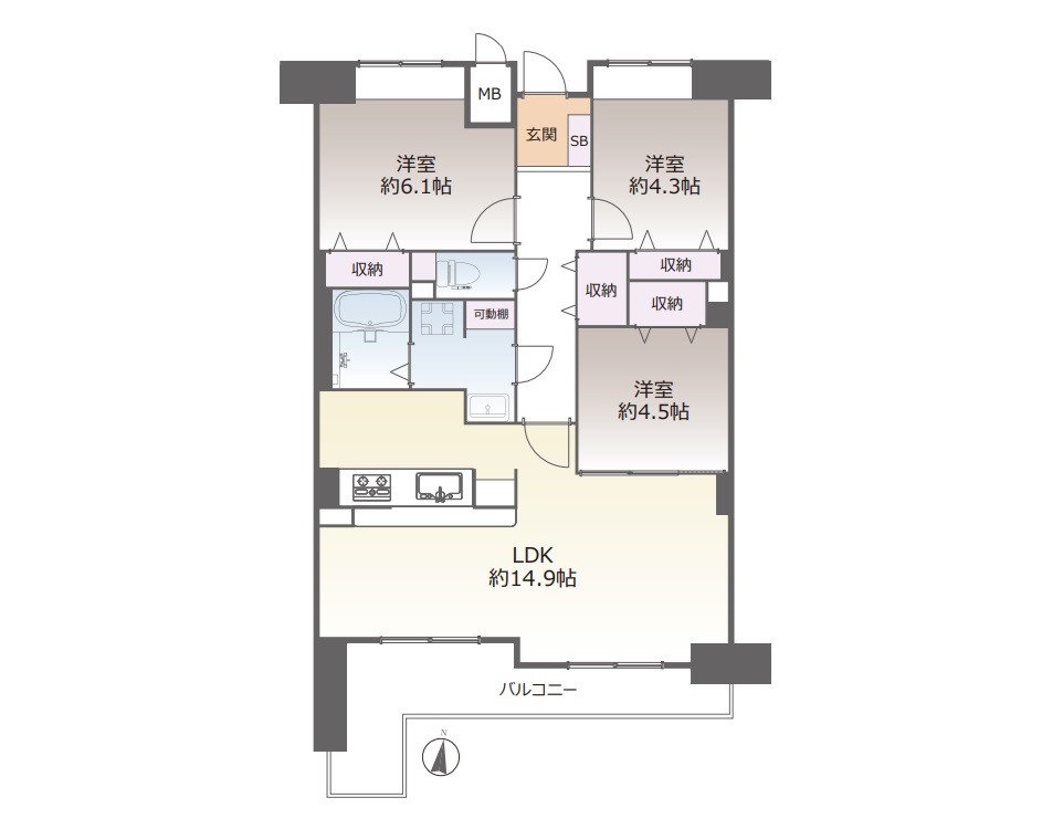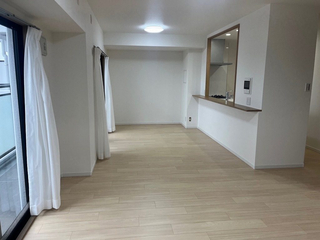 JR住吉駅を南西へ約450m、徒歩6分ほど。阪神御影駅を北東へ同じく約450m、徒歩6分ほどのアクセスとなります。国道2号線の少し南側の立地、国道の車両通行音はほとんど気になりません。平成12年建築(築後25年経過)の8階建て、総戸数64戸の中規模マンション、このたび7階部分、南向きのお部屋をリノベーションしました。床・壁・天井の張替は勿論、システムキッチン・浴室・洗面・トイレなどの水回りや給湯器などの設備もすべて新調されております。専有面積78㎡に、3LDKの間取りを配置、14.9帖サイズのLDKは、広く南バルコニーに面して開放しており、採光や通気性などが十分に確保されております。尚、現在南側に新築マンションの工事が行われておりますが、4階建てにて、当該お部屋からの景観はそれほど損なわれません。