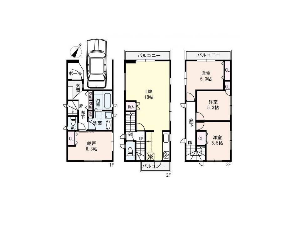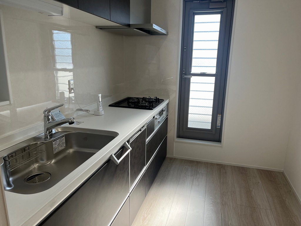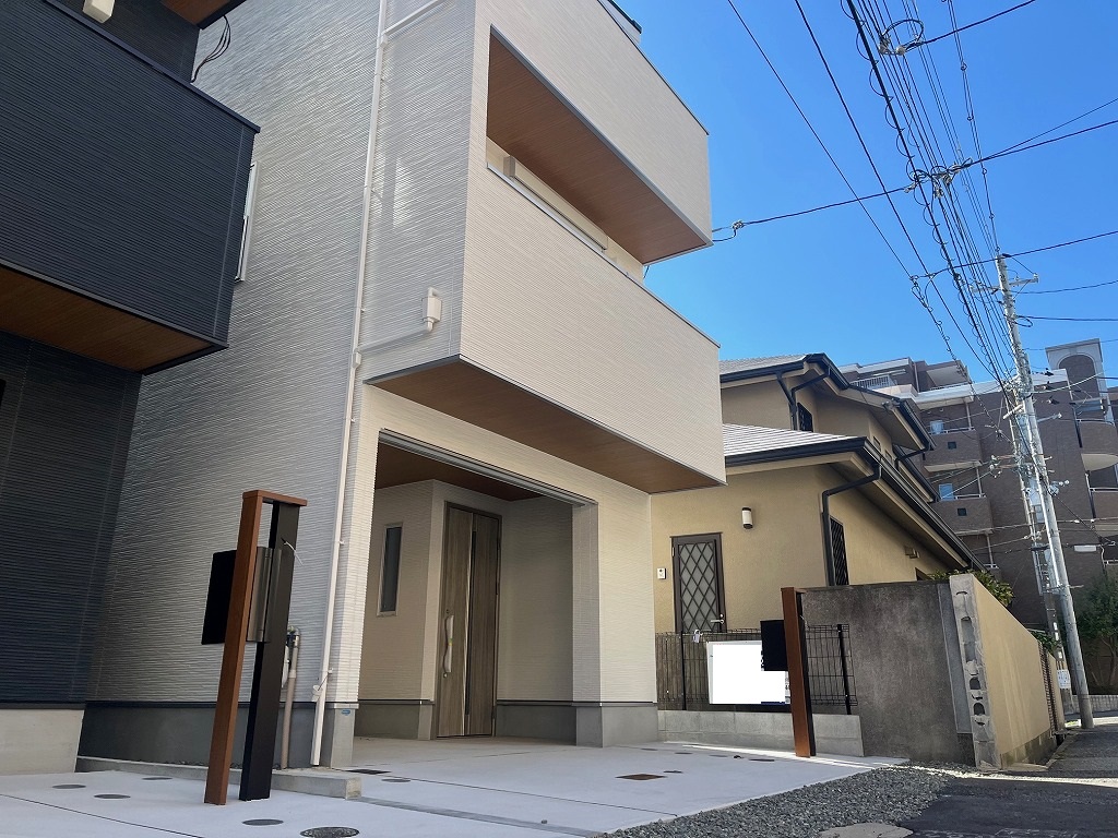 阪急王子公園駅を北東へ約600m、なだらかな登り勾配の道程で徒歩8分ほどのアクセスとなります。周辺は木造2階建住宅の他、小規模なマンションなどが混在する住宅街です。本物件は、北側4m幅員の道路に面した木造3階建新築分譲住宅2区画販売の西側の棟です。ビルトインの駐車場が1台分付いております。延べ床面積106㎡(車庫面積含む)に、4LDKの間取りを配置、トイレは1・2階に、バルコニーは2階の南北、3階の北側に設置されております。南側の敷地が少し低くなっておりますので、採光や通気性は十分に確保されております。キッチンは独立タイプ、キッチン横からバルコニーへの出入りが可能です。リビングにはダウンライトが多数使用されており、床暖房が設置されております。ミストサウナ機能付浴室暖房乾燥機も嬉しい設備です。