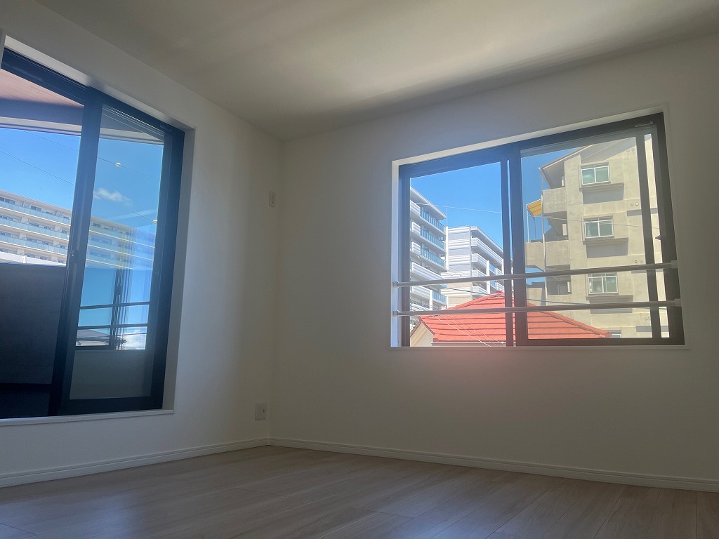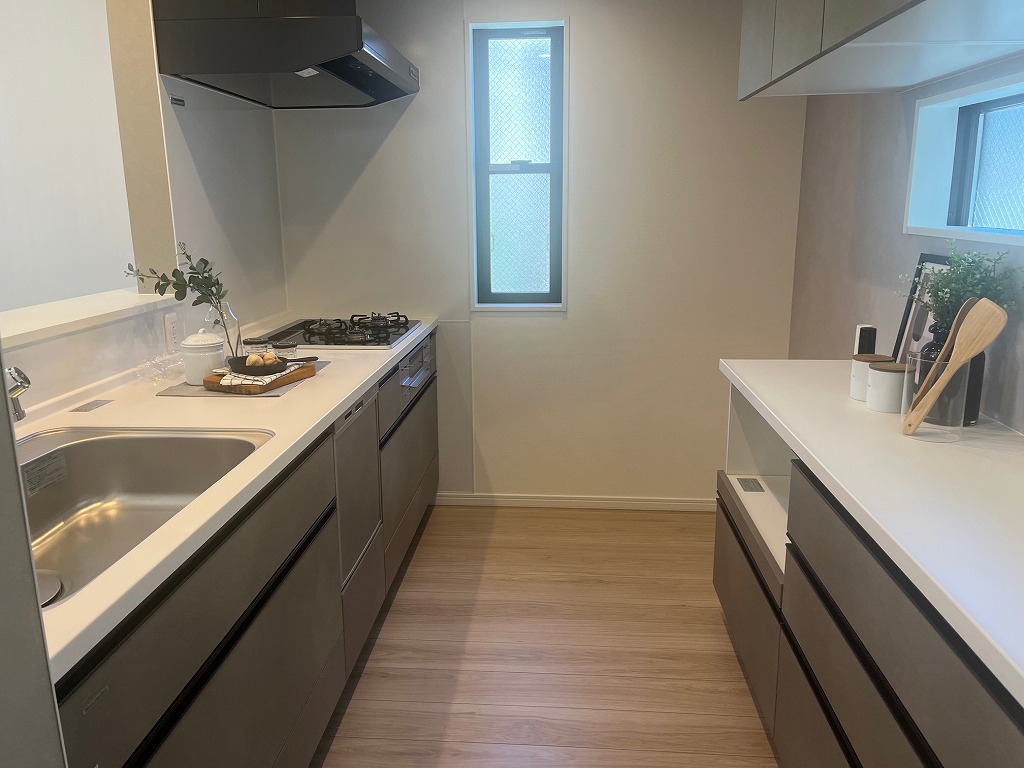 JR摩耶駅南出口を西へ約160m、徒歩2分ほどのアクセスとなります。阪神西灘駅にも徒歩3分ほどの近さです。北側15m、東側8mの北東角地に面した木造3階建新築分譲住宅、1区画の販売です。グレーの外観がお洒落な雰囲気で、ビルトインの駐車場が1台分付いております。延べ床面積129㎡(車庫面積含む)に、4LDKの間取りが配置されております。本物件の一番の特徴は、収納の多さです。外部の車庫横に2箇所、玄関横シューズクローク、キッチン背面に大容量の食器棚、また横には5か所に収納庫が設置されているのです。トイレは1階と2階、バルコニーは3階の1か所のみです。周辺道路は広いのですが、それほど交通量は多くなく、JR車両通過音も気になるほどではございません。室内設置の小物や家具は、ディスプレイ用にて、撤去されます。