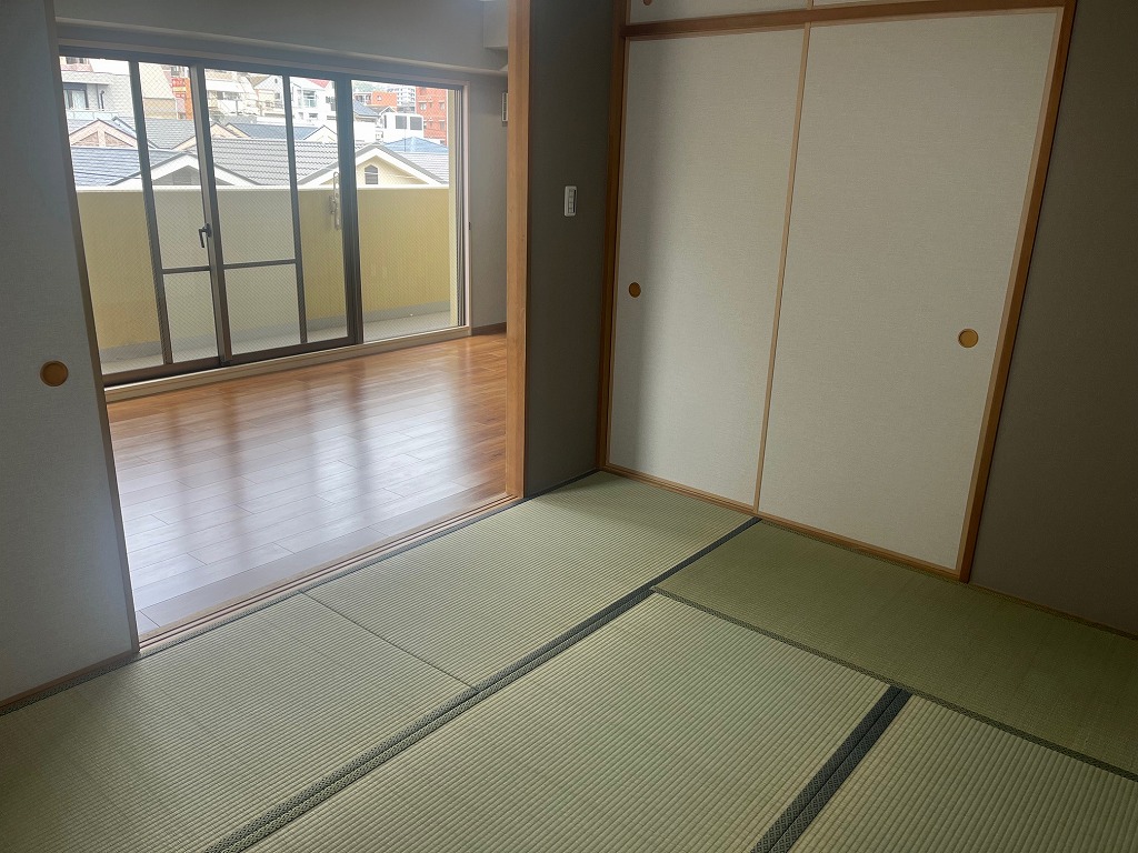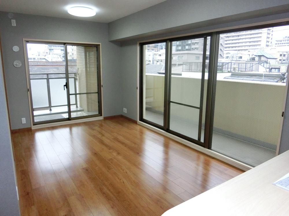 阪神新在家駅を北東へ約280m、徒歩4分ほど。JR六甲道駅を南東へ約800m、徒歩10分ほどのアクセスとなります。国道2号線と、阪神電車との中間付近のエリア、周辺は一戸建て住宅の他、小規模な店舗や事務所などが混在するエリアです。平成13年建築(築後24年経過)の7階建、総戸数57戸の中規模マンション、このたび4階部分、北西東の3方向角のお部屋を一部リフォームしております。専有面積67㎡に、3LDKの間取りを配置、バルコニーは北と西面に付いております。13.5帖サイズのLDKは、比較的採光も確保されており、キッチン横から、バルコニーへの出入りができるのが嬉しいものです。