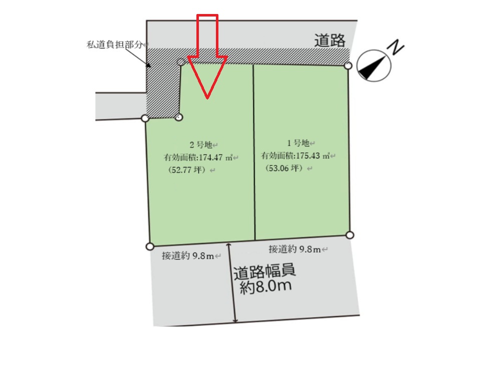 阪急六甲駅を北西へ約950m、若干の登り勾配の道程で徒歩14分ほどのアクセスとなります。周辺は、一戸建ての住宅の他、小規模で低層な分譲や賃貸のマンションが建ち並ぶ閑静な住宅街です。本物件は、南側8.4m幅員の道路と、北側3m幅員の私道に面した、南北両面道路となっております。従前の建物は解体され、更地状態です。南側道路から、約2mほどの高台です。よって、堀込車庫などの造作も可能です。前面道路は広いのですが、車両の通行はほとんどなく、喧噪感はございません。建築条件の付いていない宅地販売にて、お好きな工務店やハウスメーカーにて、自由設計の建物の建築が可能です。道路向かいは、最近建築された5階建ての分譲マンションですが、道路が広く、こちらが高台ですので、それほどの圧迫感はございません。
