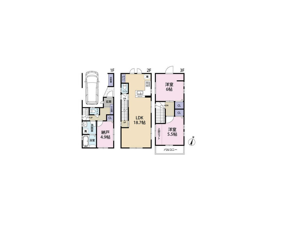 阪急王子公園駅を北東へ約1.3キロ、登り勾配の道程ですので、登りは徒歩22分ほど、下りは徒歩17分ほどのアクセスとなります。阪急六甲駅から、神戸市バス2系統乗車12分、五毛バス停より徒歩5分ほどのアクセスもございます。周辺は低層の住宅が建ち並ぶ、閑静な住宅街となっております。本物件は、北側3.5m幅員の私道に面した木造3階建新築分譲住宅、1区画の販売です。ビルトインの駐車場が1台分付いております。前面道路が狭い目ですので、車両制限がございます。延べ床面積99㎡(車庫面積含む)に、3LDKの間取りを配置、3階の南北の洋室は屋根勾配を利用したロフトがあるのが特徴的です。キッチンはコンパクトな動線が可能なL型タイプ、大容量の食器棚も設置されております。3階の南側洋室からの開放的な景観もおすすめです。