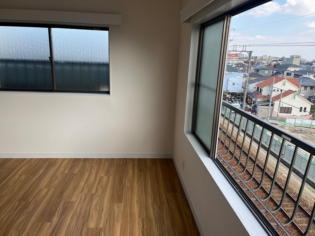 JR甲南山手駅を北東へ約500m、徒歩7分ほどのアクセスとなります。阪急神戸線の山側エリアです。本物件は、北側4.8m幅員の道路に面しており、南側は、軌道となっております。軌道より2mほど高台になっており、景観を損ねておりませんが、電車音はします。昭和58年建築(築後42年経過)の半地下付き木造2階建中古住宅を、このたび内外装すべてやり直しております。コンセプトは、アーリーアメリカンスタイルで、水色の外壁がお洒落な感じです。半地階に洋室12.9帖、1階にLDKと洗面・お風呂などの水回りを、2階に洋室9.3帖と、床の間付きの和モダンな和室8帖が配置されているのです。水回りもすべてお洒落な感じで新調されております。