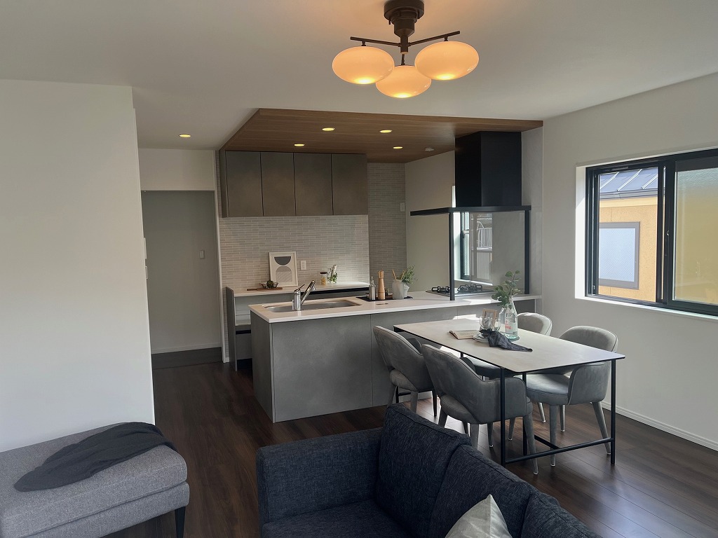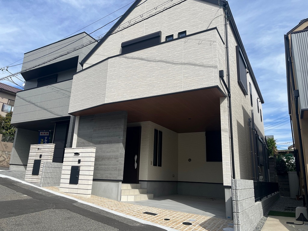 阪急六甲駅を北西へ約1.1キロ、なだらかな登り勾配の道程で徒歩15分ほどのアクセスとなります。2番系統のバス路線では、バス乗車6分、護国神社前バス停より徒歩1分ほどのアクセスも可能です。山の手のエリア、周辺は一戸建て住宅が建ち並ぶ閑静な住宅街となっております。仙谷川東側道路に面する立地です。木造2階建新築分譲住宅、2区画販売の南側の棟です。ビルトインの駐車場が1台分付いております。延べ床面積120㎡に、4LDKの間取りを配置、1階に洋室3つ、2階にLDKと7帖の主寝室を設置しております。17.2帖サイズのLDKは、広く河川の方に面しており、爽やかな景観と空気を楽しめます。キッチン横の大容量のパントリーや、各所の収納など、主婦目線での間取りがおすすめです。