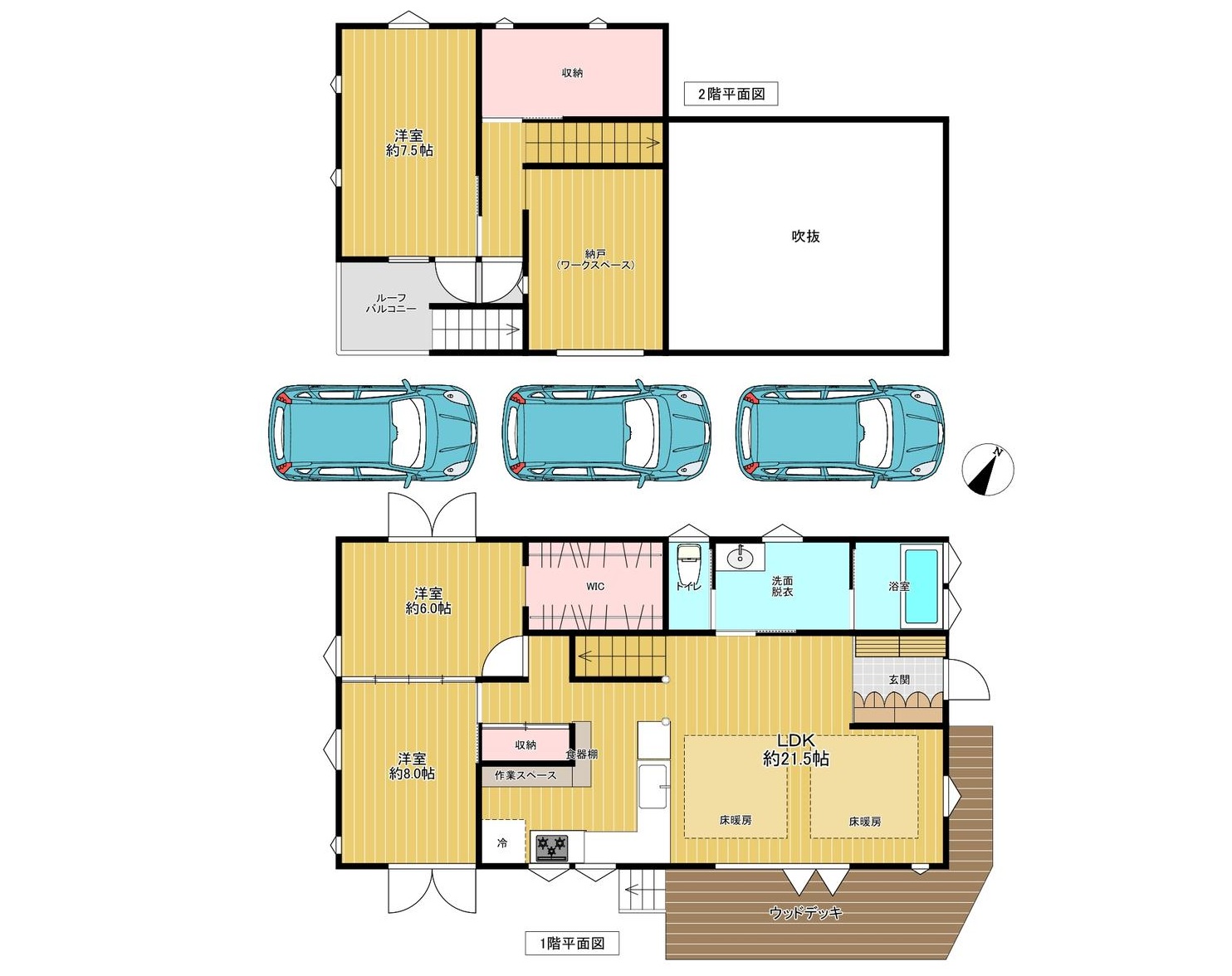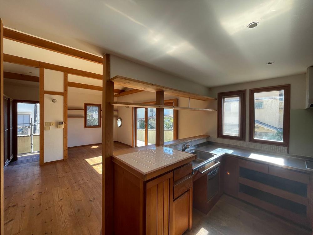 JR住吉駅からバス乗車18分、渦森台バス停より徒歩3分ほどのアクセスとなります。山の手のエリア、6~80坪ほどに区割りされた閑静な住宅街となっております。本物件は、東側6m、南側6mの東南角に位置し、南側道路面より1m程度高台となっております。平成15年建築(築後22年経過)の木造2階建中古一戸建を、このたび内外装全面的にリフォームしております。延べ床面積106㎡に、5LDKの間取りを配置、床・壁などウッディ調な仕上げが素敵です。LDKの吹き抜け空間が開放的で、またリビング前に、ウッドデッキも設置しております。南側に広く展開した間取りにて、採光や通気性などは、十分に確保されているのもおすすめです。車は縦列で、3台分の駐車スペースがございます。