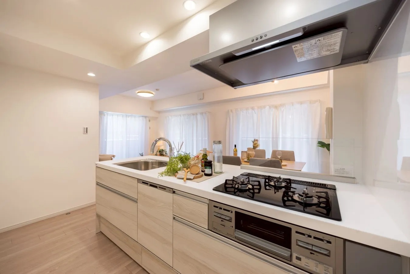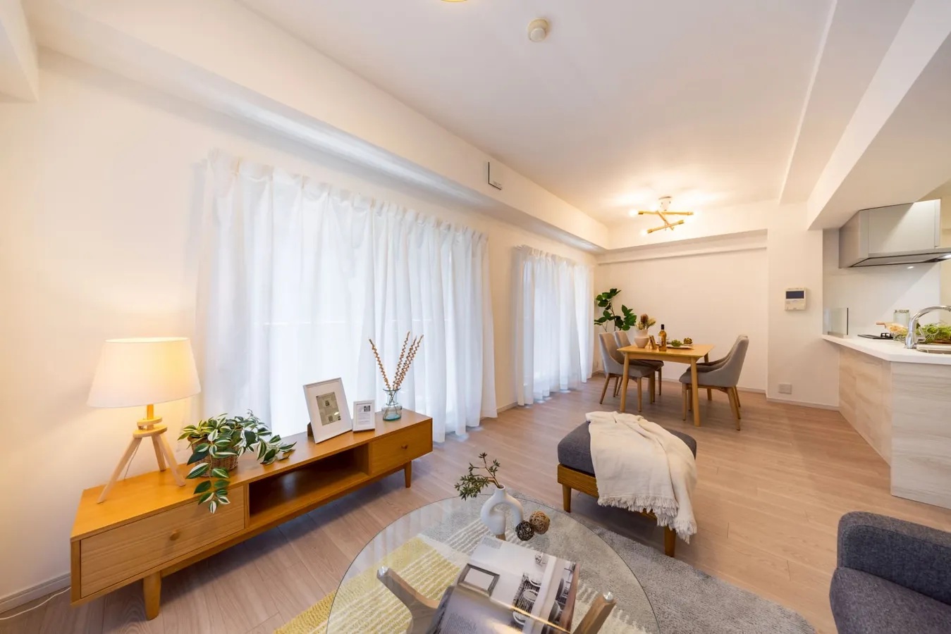 JR摂津本山駅を南東へ約700m、徒歩9分ほどのアクセスとなります。国道2号線の一筋北側のエリア、周辺は一戸建て住宅の他、分譲や賃貸のマンションなどが混在する住宅街となっております。平成9年建築(築後28年経過)の5階建て、総戸数23戸の小規模マンション、このたび2階部分、東南角部屋をリノベーションしております。床・壁・天井の張替は勿論、システムキッチン・浴室・洗面・トイレなどの水回りや給湯器などの設備もすべて新調されております。延べ床面積76㎡に、3LDKの間取りを配置、バルコニーが、南から東へ半周ぐるりとあり、南側は、奥行きがたっぷりございます。室内設置の小物や家具は、ディスプレイ用にて、撤去されます。