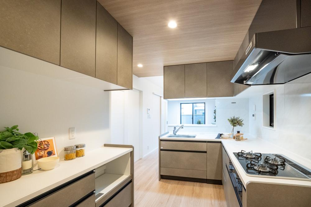 阪神青木駅を南東へ約300m、徒歩4分ほどのアクセスとなります。下町の住宅街、周辺は一戸建て住宅の他、小規模な事務所や工場などが混在するエリアです。本物件は、東側7.5m幅員の道路に面した木造3階建新築分譲住宅、1区画の販売です。ビルトインの駐車場が1台分付いております。延べ床面積100㎡(車庫面積含む)に、3LDKの間取りを配置、トイレ・バルコニーとも、2階・3階に設置されております。キッチンはL型形状、背面に大容量のパントリーがあるのがおすすめです。3階7.3帖の主寝室には、採光のためのトップライトがあり、またウォークインクローゼットが設置されております。車庫スペースにも、外部収納がございます。前面道路の交通量はそれほどなく、幅員も広いので、車庫入れはスムーズに行えます。本庄中央公園へ、約150mほどの近さも嬉しいものです。