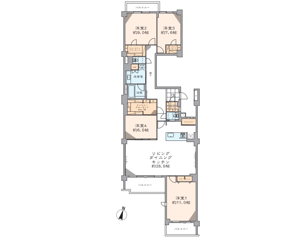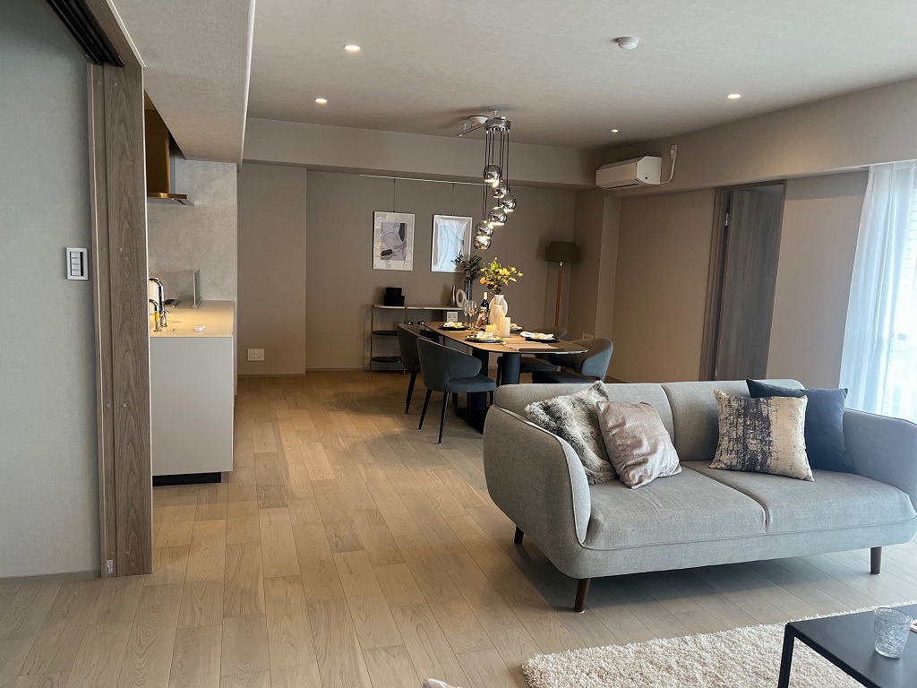 阪急御影駅を南西へ約500m、徒歩6分ほどのアクセスとなります。周辺は木造2階建の住宅が建ち並ぶ閑静な住宅街となっております。平成2年建築の4階建て、総戸数22戸の小規模マンション、このたび3階部分、南向きのお部屋をリノベーションしました。床・壁・天井の張替は勿論、システムキッチン・浴室・洗面・トイレなどの水回りや給湯器などの設備もすべて新調されております。専有面積150㎡に、4LDKの間取りを配置、ウォークインクローゼットや、納戸、パントリーなど、各所への収納が多いのが特徴的です。28.5帖サイズのLDKはとてもゆったりとしており、隣接の洋室6.5帖も、開放すれば一体としてご利用可能です。バルコニーからの景観もよく、採光や通気性など十分に確保されております。トイレは2箇所にございます。御影北小学校へ約300mほどの近さも嬉しいものです。