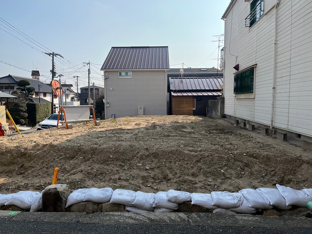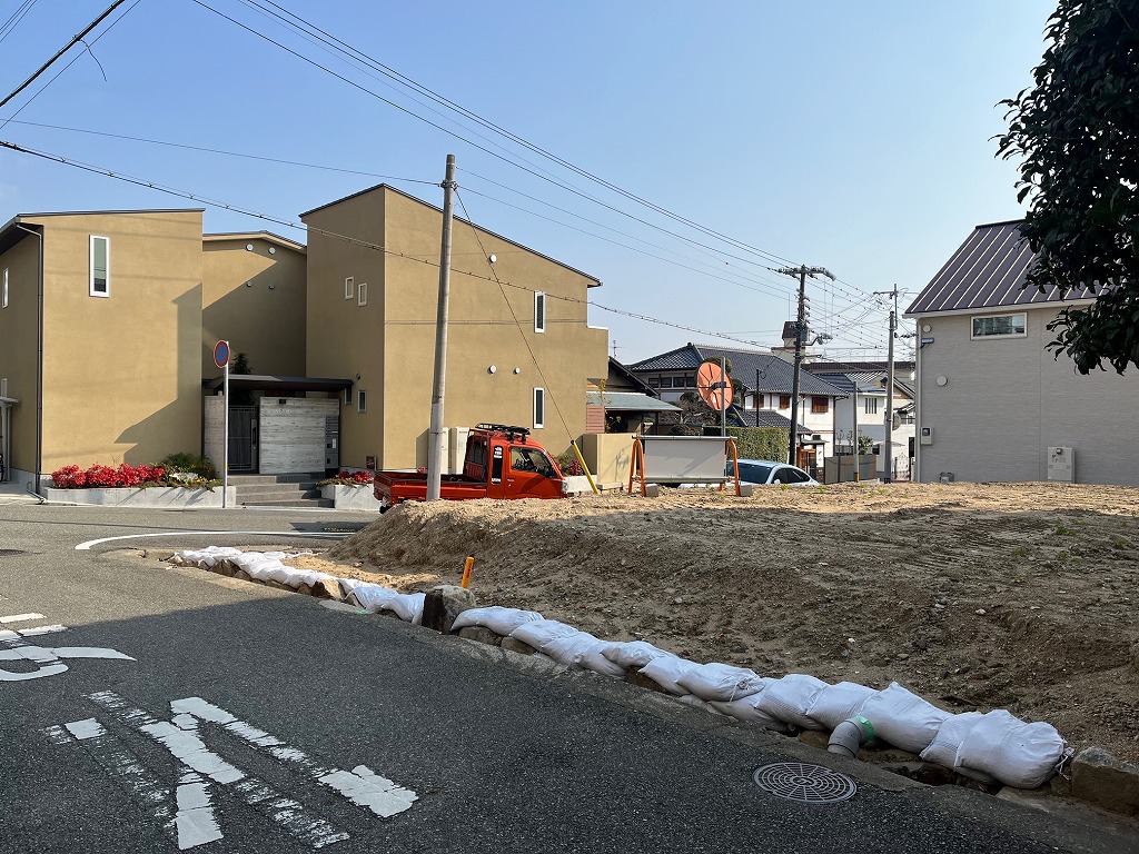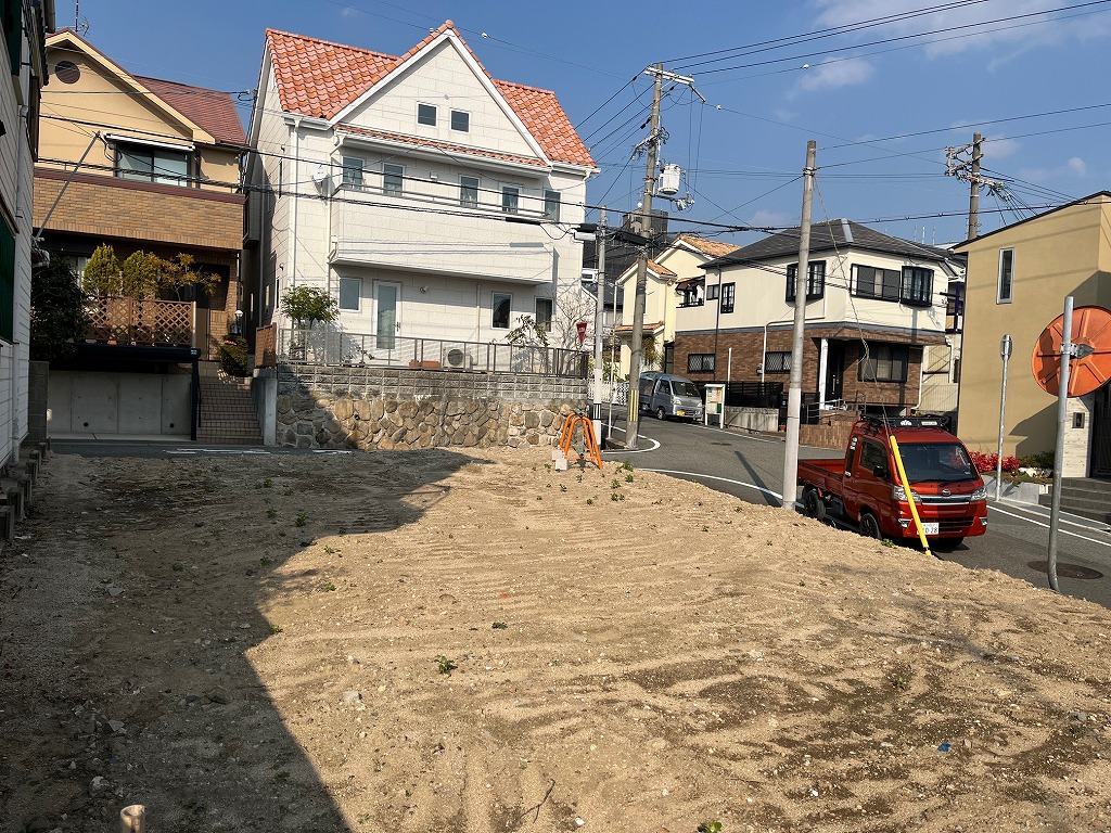 阪急六甲駅を北西へ約450m、徒歩6分ほどのアクセスとなります。人気の住宅街<篠原本町>エリア、周辺は木造2階建住宅が建ち並ぶ閑静な住宅街となっております。本物件は、東側8m、北側4m幅員の道路の面した北東角地です。東側道路面より若干高台となっておりますが、北側は道路とほぼ同じ高さです。土地形状はほぼ整形地で、間取りの配置もしやすそうです。建築条件の付いていない宅地販売にて、お好きな工務店やハウスメーカーでの建築が可能です。東側道路は、若干交通量はありますが、車両通行音が気になるほどではございません。建築基準法におけます第一種低層住居エリアですので、それほど高い建物の建築は出来ませんが、角地にて建蔽率が10%加算される可能性がございます。南側敷地も少し低いので、本件では採光や通気性が十分確保されるかと思われます。