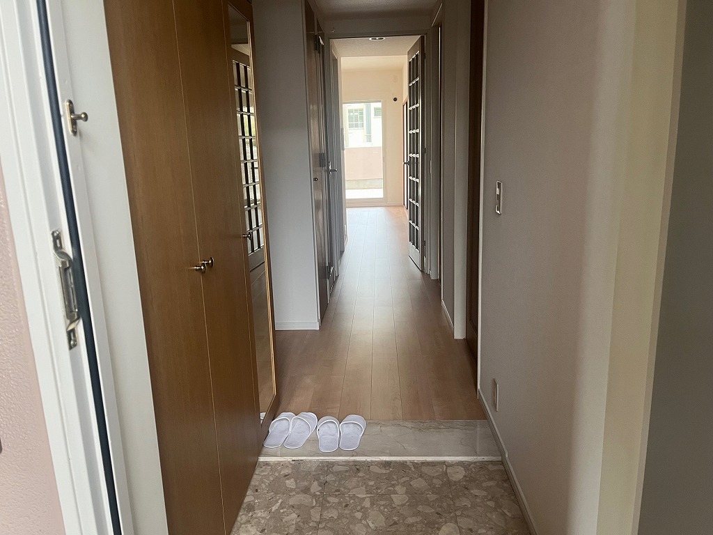 阪神御影駅を北西へ約400m、徒歩5分ほど。JR住吉駅を南西へ約850m、徒歩11分ほど、阪急御影駅を南へ厄950m、徒歩12分ほど、3つの駅へのアクセスが可能な立地です。国道2号線の南側に位置し、その南隣接には御影中学校がございます。平成9年建築(築後28年経過)の10階建て、総戸数80戸の中規模マンション、このたび1階部分、南西角のお部屋をリノベーションしました。床・壁・天井の張替は勿論、システムキッチン・浴室・洗面・トイレなどの水回りや給湯器などの設備もすべて新調されております。専有面積64㎡に、3LDKの間取りを配置、南側の20帖サイズほどの専用テラスが広々として魅力的です。その南側は、中学校のテニスコートとなっております。すべての窓が2重サッシとなっており、国道の車両通過音はほとんど気になりません。御影小学校まで約300mほどの近さも嬉しいものです。またマンション目の前は、神戸市バスや、阪神国道バスのバス停です。