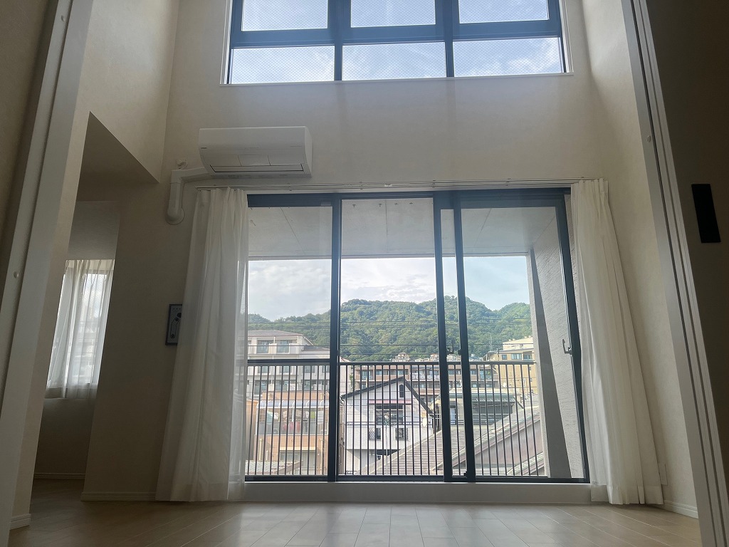 JR摂津本山駅を東へ約650m、徒歩6分ほどのアクセスとなります。周辺は木造2階建の一戸建て住宅の他、小規模な分譲や賃貸のマンションなどが混在する閑静な住宅街となっております。平成8年建築(築後29年経過)の5階建て、総戸数26戸の小規模マンション、このたび4階部分のお部屋をリノベーションしました。床・壁・天井の張替は勿論、システムキッチン・浴室・洗面・トイレなどの水回りや給湯器などの設備もすべて新調されております。特徴的なのは、上階にロフトがあり、リビングの天井高がとても高くなっていることです。専有面積68㎡に、3LDKの間取りが配置されており、北・西・南の3か所にバルコニーが設置されております。北側のバルコニーは奥行きがあり、広さを感じます。お風呂にも窓があり、キッチン横から、西側のバルコニーへの出入りが可能です。
