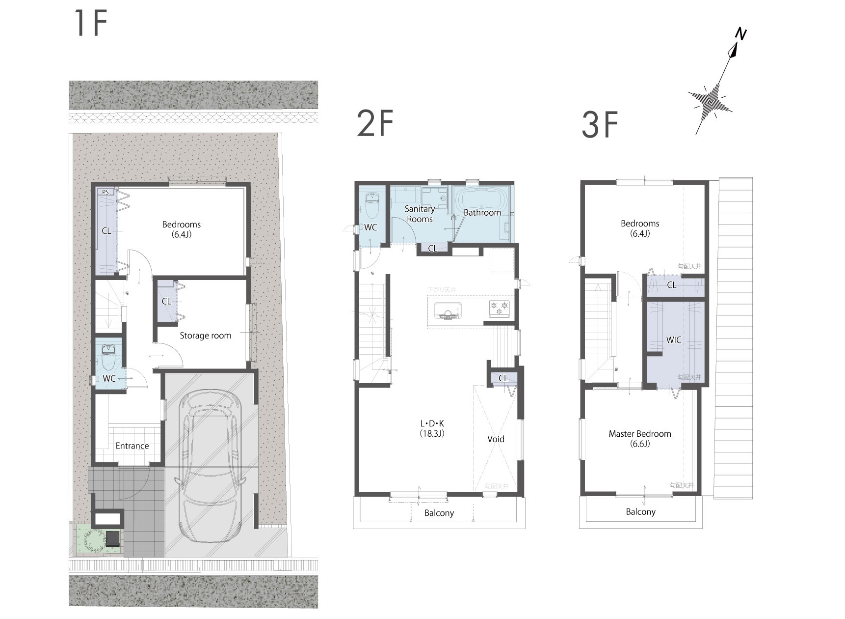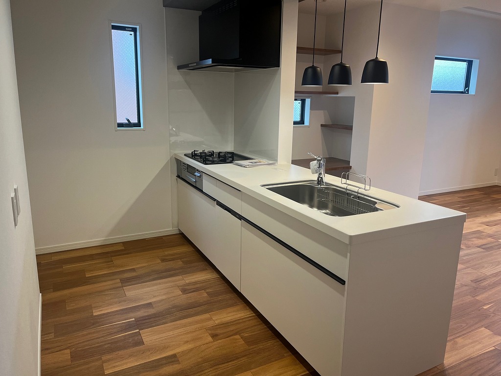 阪急王子公園駅を北東へ約1キロ、登り勾配の道程ですので、登りは徒歩18分ほど、下りは徒歩14分ほどのアクセスとなります。摩耶ケーブル下で著名な「桜のトンネル」の近くの立地です。南側6m幅員の道路に面した木造3階建新築分譲住宅2区画販売の東側の棟です。ビルトインの駐車場が1台分付いております。延べ床面積121㎡(車庫面積含む)に、3LDK+納戸の間取りを配置、トイレは1・2階の2箇所、バルコニーは2・3階の2箇所に設置されております。グレーの外観が象徴的で、上質な仕様の仕上がりとなっております。3階の屋根勾配が、斜線規制により若干斜めになっておりますが、それほど圧迫感はございません。3階洋室6.6帖に設置されていますウォークインクローゼットは3帖サイズの大容量です。また1階の大容量の納戸はお部屋としてもご利用可能です。