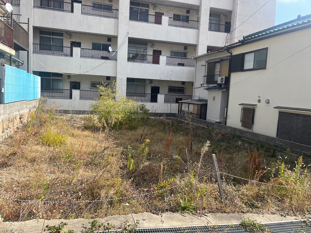 阪急王子公園駅を北東へ約1.2キロ、登り勾配の道程ですので、行きは徒歩20分ほど、下りは徒歩16分ほどのアクセスとなります。阪急六甲駅から2番系統のバス路線でのアクセスもございます。山の手のエリア、周辺は木造2階建の一戸建てが建ち並ぶ、閑静な住宅街となっております。本物件は、西側3.3mの道路に、間口が10.4m面した整形地です。道路面より若干低くなっております。東隣接は4階建ての賃貸マンションです。土地形状が正方形に近いので、間取り配置プランがしやすいのが一番のおすすめです。前面道路は比較的狭いのですが、車両の進入は可能です。建築条件は付いておりませんので、お好きな工務店やハウスメーカーでの建築が可能です。