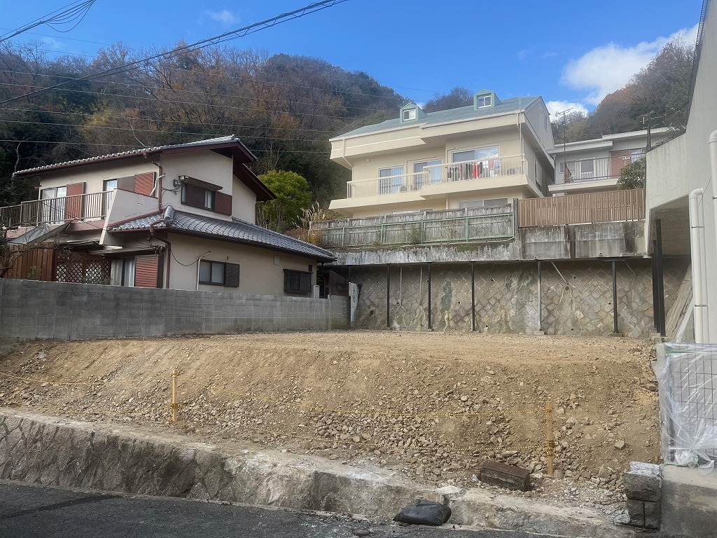 JR甲南山手駅を北西へ約1.3キロ、登り勾配の道程ですので、登りは徒歩23分ほど、下りは徒歩13分ほどのアクセスとなります。山の手のエリア、周辺は4~50坪ほどに区割りされた木造2階建住宅が建ち並ぶ、閑静な住宅街となっております。本物件は、南側6m道路に、間口が12mほど面した売土地、約65坪ほどです。建築条件は付いておりませんので、お好きな工務店やハウスメーカーにて、建築が可能です。従前の建物は解体され、更地となっております。道路面より1mほど高台になっており、採光や通気性などが確保されております。東隣接地・北隣接地とは、2mほどの高低差がございます。本物件より20mほど西側に、小規模な中野谷公園がございます。