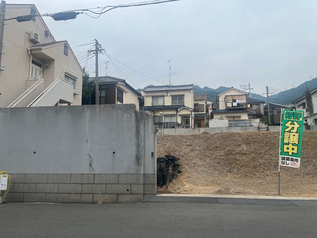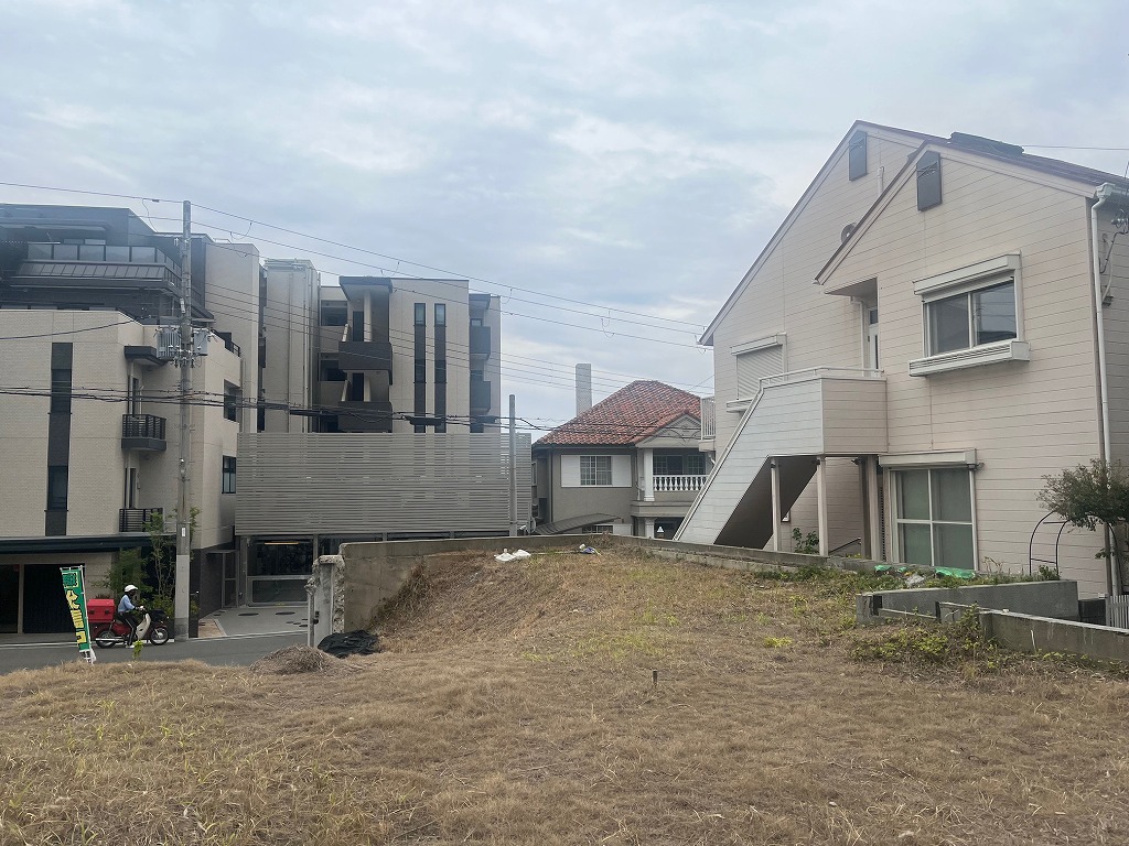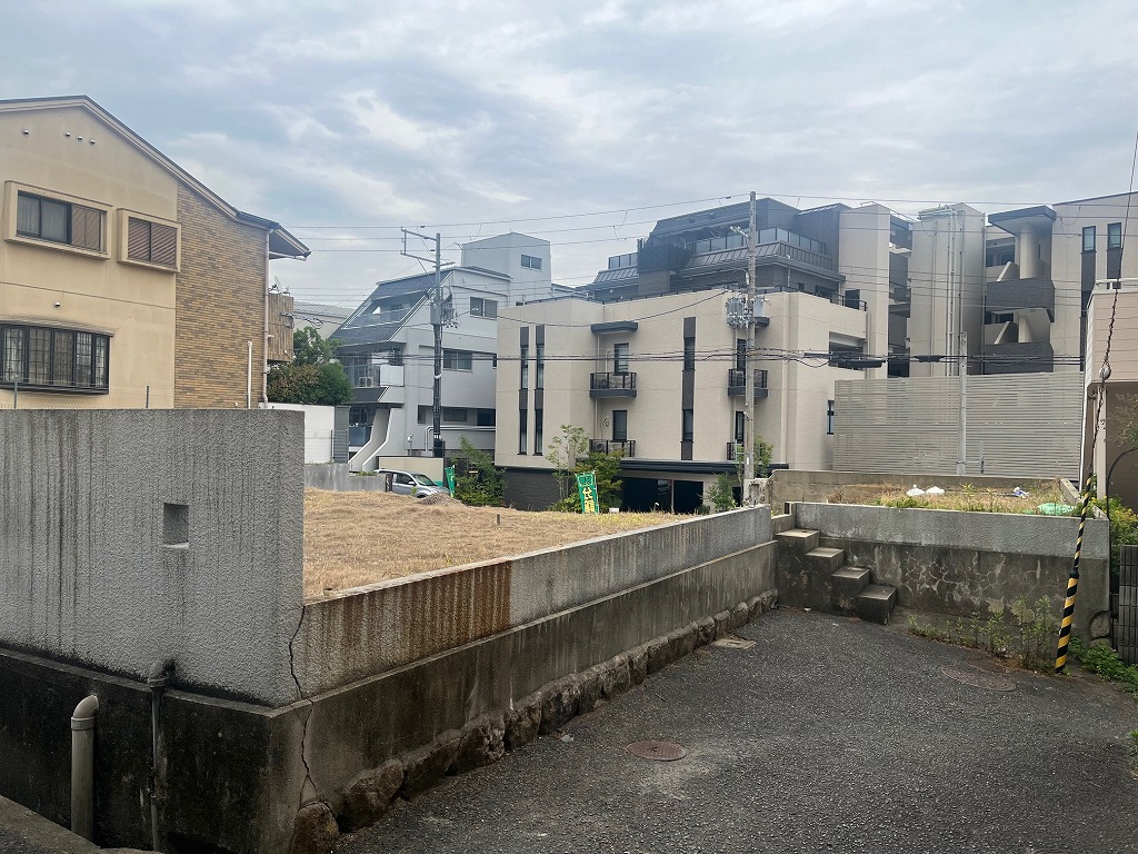 阪急六甲駅を北西へ約950m、若干の登り勾配の道程で徒歩14分ほどのアクセスとなります。周辺は、一戸建ての住宅の他、小規模で低層な分譲や賃貸のマンションが建ち並ぶ閑静な住宅街です。本物件は、南側8.4m幅員の道路と、北側3m幅員の私道に面した、南北両面道路となっております。従前の建物は解体され、更地状態です。南側道路から、約2mほどの高台です。よって、堀込車庫などの造作も可能です。前面道路は広いのですが、車両の通行はほとんどなく、喧噪感はございません。建築条件の付いていない宅地販売にて、お好きな工務店やハウスメーカーにて、自由設計の建物の建築が可能です。道路向かいは、最近建築された5階建ての分譲マンションですが、道路が広く、こちらが高台ですので、それほどの圧迫感はございません。